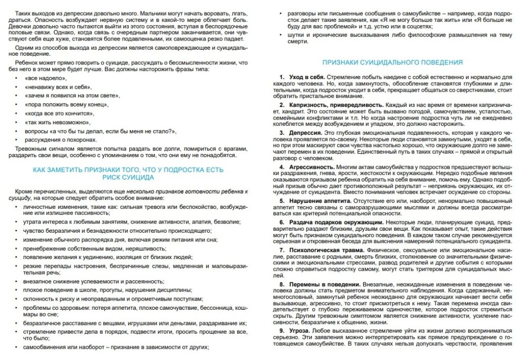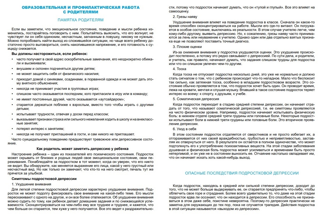 Профилактика суицидального поведения к подростков. Памятка для родителей