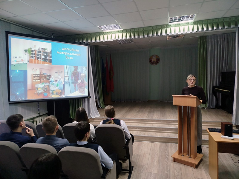26 ноября 2025 года состоялась встреча учащихся VIII – XI классов ГУО «Молодечненская санаторная школа-интернат» с представителями УО «Молодечненский государственный медицинский колледж имени И.В. Залуцкого» в рамках профориентации. Учащихся познакомили