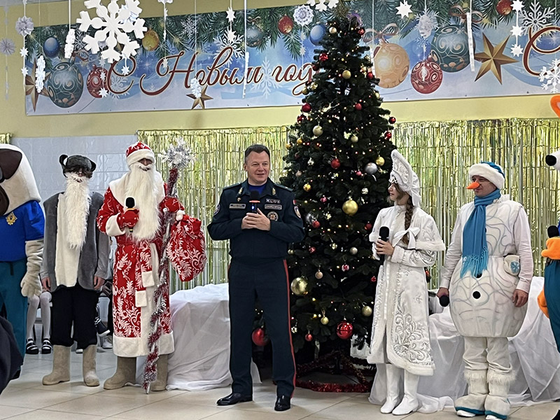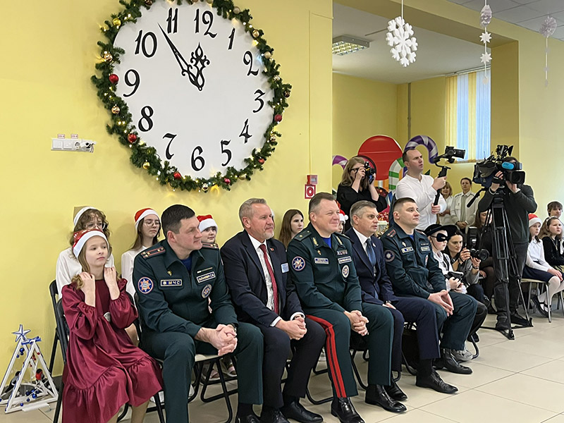 В рамках республиканской благотворительной акции «Наши дети» учащихся ГУО «Молодечненская санаторная школа-интернат» поздравил Министр МЧС Республики Беларусь Вадим Иванович Синявский и председатель Молодечненского районного исполнительного комитета Павел Валентинович Губко. Для ребят подготовили новогодние подарки, а для школы — сертификат на спортивное оборудование и инвентарь. Началась праздничная встреча с работы интерактивных площадок, затем было организовано яркое новогоднее представление «Пусть праздник всем подарит чудо», на котором ребята окунулись в Новогоднюю сказку. С чрезвычайной ситуацией по сценарию праздника, которая могла сорвать визит Деда Мороза и Новый год, юные герои-спасатели санаторной школы успешно справились. Детские улыбки, радость встречи, заряд бодрости, подарки: все способствовало праздничному настроению и вере в чудеса.