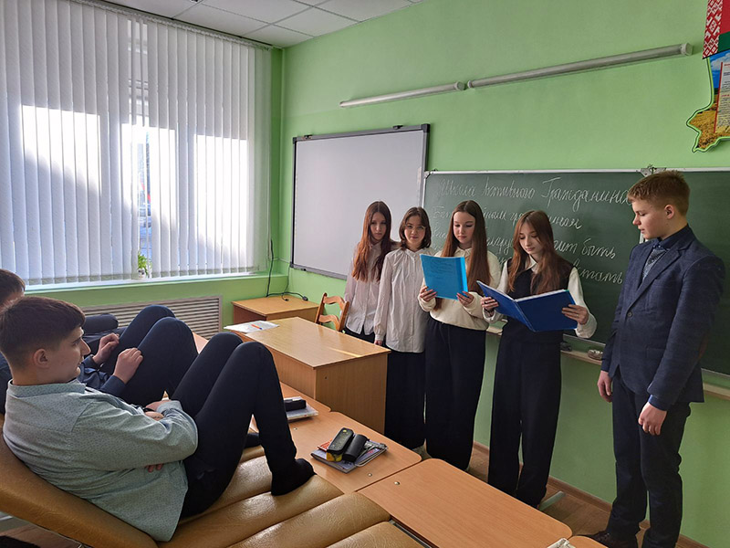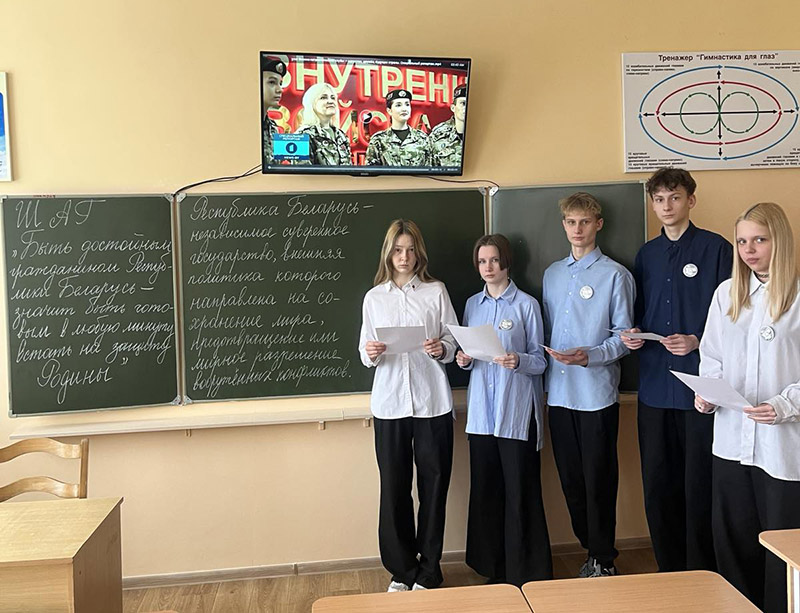 29 января 2026 года в учреждении образования для учащихся прошло занятие в рамках республиканского информационно-образовательного проекта «ШАГ» по теме: «Быть достойным гражданином Республики Беларусь – значит быть готовым в любую минуту встать на защиту Родины». В ходе обсуждения ребята узнали, кто и каким образом обеспечивает обороноспособность Республики Беларусь, почему военная служба во все времена считалась делом чести и настоящей школой мужества. Особое внимание было уделено возможностям получения военных специальностей в учреждениях, где можно связать своё будущее с военной профессией.