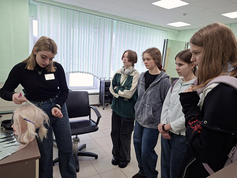 7 февраля 2026 года в рамках плана профориентационной работы учащиеся VIII–IX классов посетили УО «Молодечненский государственный колледж», отделение «Бытовое обслуживание». Ребята ознакомились с востребованными профессиями — швея, парикмахер, продавец, узнали об особенностях профессиональной деятельности, условиях труда. Под руководством опытных мастеров производственного обучения учащиеся смогли попробовать себя в каждой из профессий: выполнили несложные швейные операции, познакомились с базовыми приёмами парикмахерского искусства и примерили на себя роль продавца, осваивая навыки общения с покупателями и работы с товаром. Такая практика помогла выявить творческие способности и коммуникативные навыки учащихся, усилив интерес к выбранным направлениям и способствуя осознанному выбору профессии.