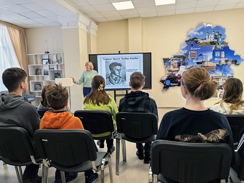 Завершился шестой школьный день посещением ГУК «Центральной районной бибилиотеки имени Максима Богдановича» ,где для учащихся был проведен литературный праздник «Мир волшебства и вдохновения» к 250-летию со дня рождения немецкого писателя, композитора, художника А. Гофмана и 210-летия его знаменитой сказки «Щелкунчик и Мышиный король». Библиотекарь познакомила ребят с биографией и творчеством легендарного писателя и сказочника. Затем была предложена литературная викторина «Путешествие в мир Щелкунчика». Литературно-творческий час позволил учащимся глубже понять смысл и содержание сказки, осмыслить важные нравственные уроки, заложенные в произведении, проявить творческие способности.