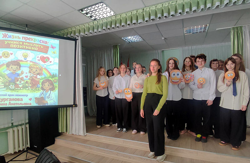 В ГУО «Молодечненская санаторная школа-интернат» состоялся интерактивный диалог «Жизнь прекрасна: учимся мыслить позитивно» с участием врача-психиатра психоневрологического диспансера Молодечненской ЦРБ Цургановой Е.А. Мероприятие было направлено на формирование у учащихся жизнеутверждающих установок, развитие позитивного мышления и повышение психологической устойчивости. Ребятам рассказал о важности сохранения психического здоровья, умении справляться со стрессом, а также поддерживать позитивный настрой. Особый интерес у учащихся вызвала практическая часть с педагогом-психологом: упражнения по нейрогимнастике, направленные на развитие внимания и координации. Мероприятие прошло в атмосфере открытого общения и позволило учащимся получить полезные знания о психологическом здоровье, а также освоить простые приёмы для поддержания эмоционального равновесия и позитивного мышления.